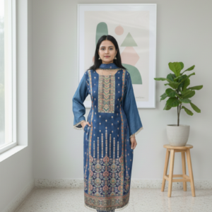 Upgrade your ethnic wardrobe with this elegant blue straight party wear suit crafted in premium Banarasi silk. Featuring rich traditional prints with detailed neckline, borders, and sleeves, this suit offers a perfect blend of classic charm and modern elegance. The straight-cut silhouette gives a flattering fit while keeping you comfortable for long hours. Ideal for festive occasions, parties, and family functions, this outfit adds a graceful touch to your look.